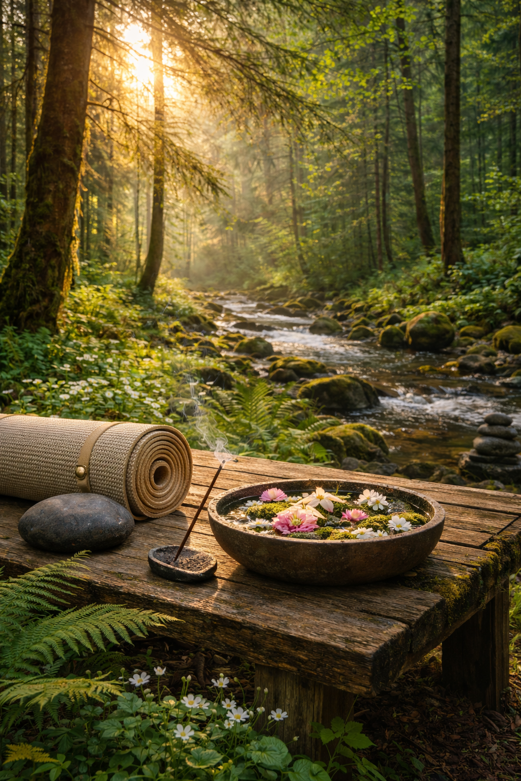 Guided forest bathing immersions to support stress management, focus, mood, and wellness